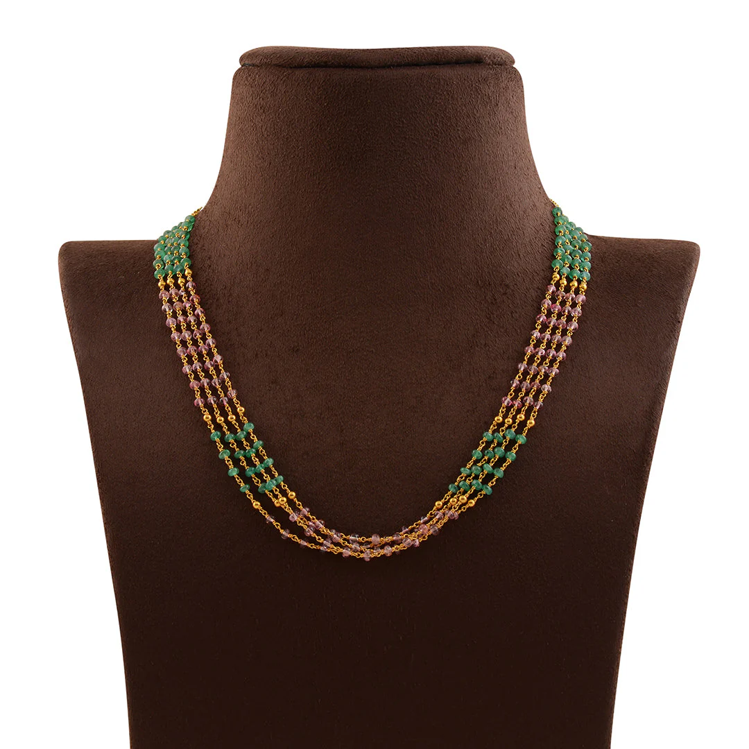Multiline Ruby and Emerald Beads Mala