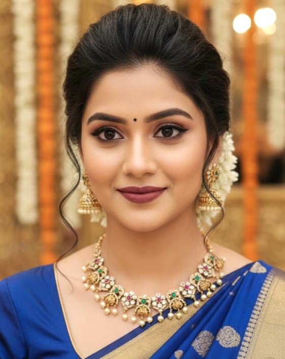 Add a touch of royal elegance to your ethnic ensemble with this beautifully crafted Victorian-style necklace, designed in a luxurious antique gold finish. The necklace features intricate floral motifs, highlighted with a harmonious blend of ruby red and emerald, green stones, delicately finished with graceful pearl hangings that enhance its traditional charm.